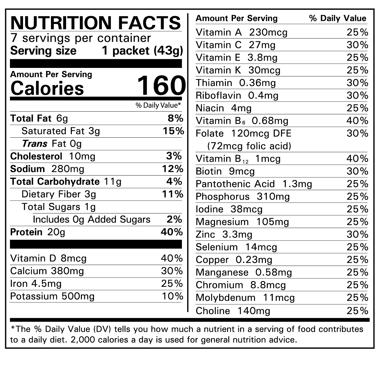 Dipotassium Phosphate, Milk Calcium Complex, Choline Bitartrate, Potassium Bicarbonate, Magnesium Oxide, Ascorbic Acid, Ferrous Sulfate, Sodium Phosphate, Zinc Sulfate, Alpha Tocopherol Acetate, Niacinamide, Manganese Sulfate, Copper Gluconate, D-Calcium Pantothenate, Pyridoxine Hydrochloride, Vitamin A Palmitate, Riboflavin, Thiamin Mononitrate, Folic Acid, Chromium Polynicotinate, Molybdenum Glycinate Chelate, Potassium Iodide, L-Selenomethionine, Phytonadione, Menaquinone 7, Biotin, Cholecalciferol, Magnesium Carbonate, Cyanocobalamin.