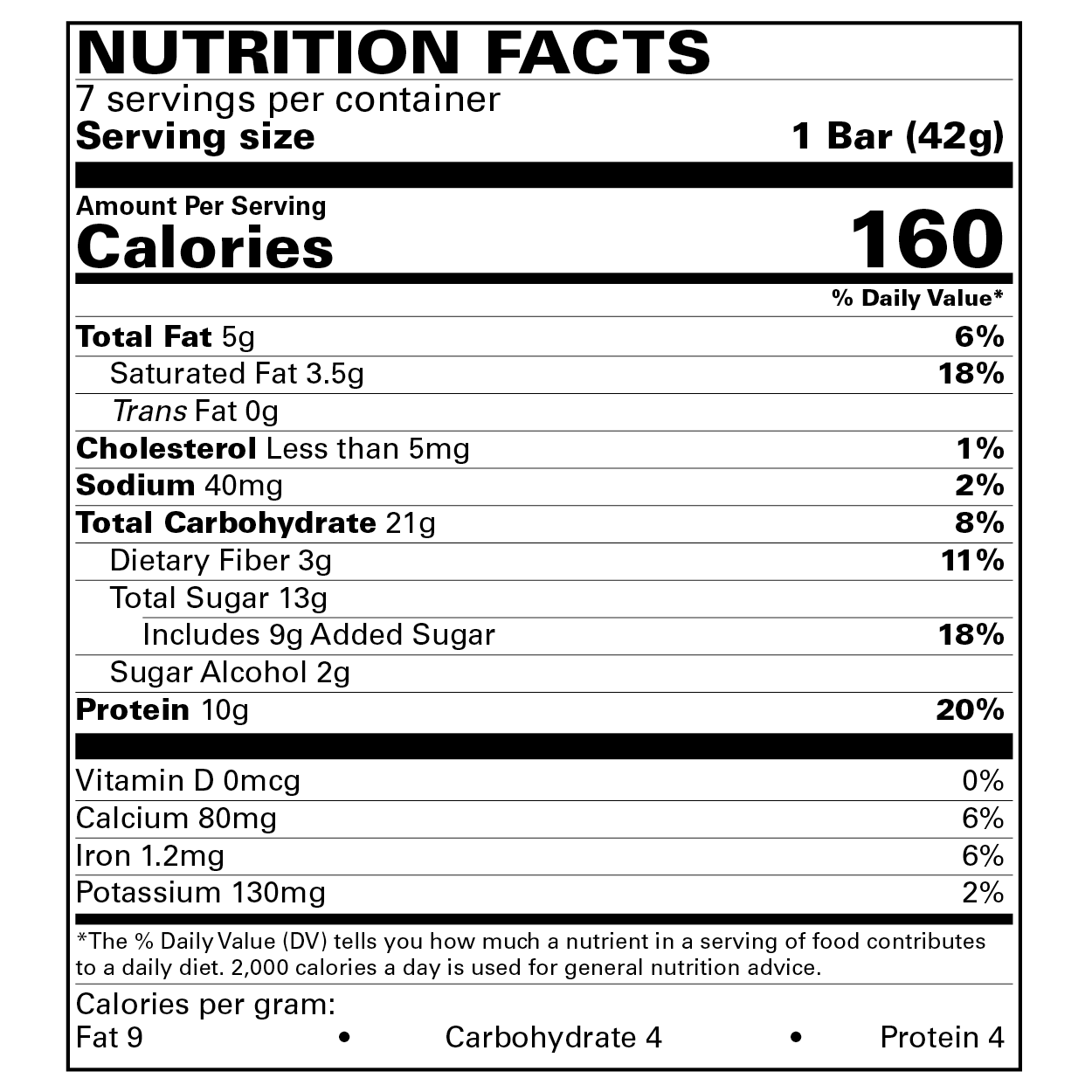 Protein Blend (Calcium Caseinate, Soy Protein Isolate, Whey Protein Isolate, Casein), Sugar, Corn Syrup, Raisins, Fractionated Palm Kernel Oil, Polydextrose, Molasses, Nonfat Milk, Rolled Oats, Glycerine, Roasted Soybeans, Water, Soy Lecithin, Soybean Oil, Brown Sugar, Maltodextrin, Nonfat Yogurt Powder (Cultured Nonfat Milk), Cinnamon, Coconut, Canola Oil, Dextrose, Honey, Cornstarch, Natural Flavor, Titanium Dioxide (For Color)